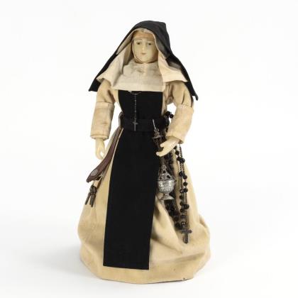 Chest head doll with Renaissance style clothes.