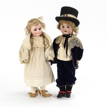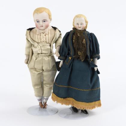 2 porcelain head dolls as a married couple.