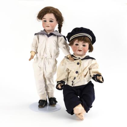 2 porcelain head dolls with ball joint bodies. J. D. Kestner.