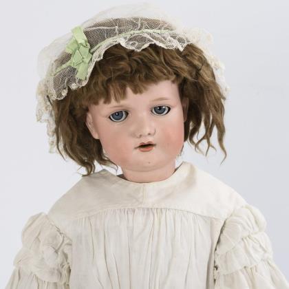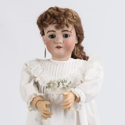Large porcelain head girl with white dress. Kley & Hahn.