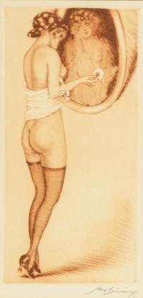 BRÜNING, Max (1887 Delitzsch - 1968 Lindau). Female nude before oval mirror.