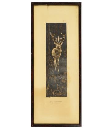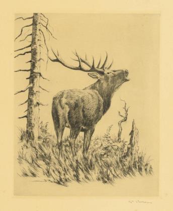 Indistinctly signed: Roaring stag.