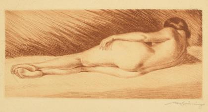 BRÜNING, Max (1887 Delitzsch - 1968 Lindau). Back view of a reclining female nude.