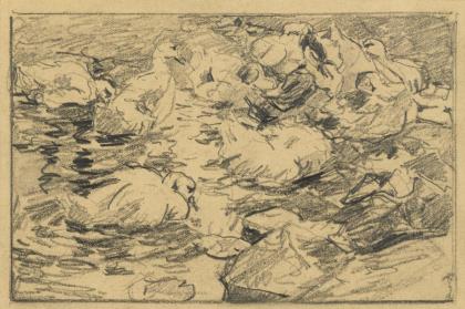 KOESTER, Alexander (1864 Burgneustadt - 1932 Munich). Study with ducks on the water.