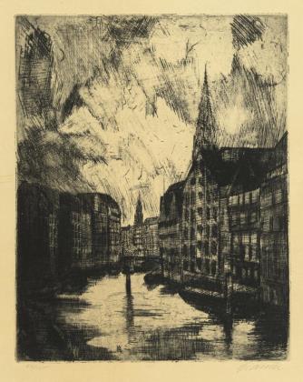 SPANIER, Will (1894 Hamburg -1954 Mölln). Abstracted harbor view of Hamburg.