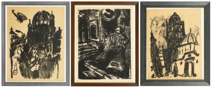 RICHTER, Hans Theo (1902 Rochlitz - 1969 Dresden). 3 copies of the work "Gebeugt Schreitende".