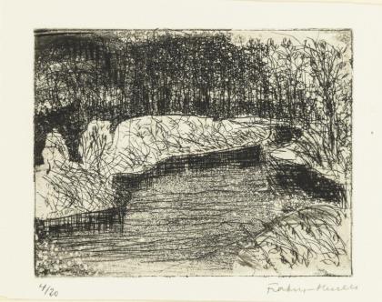 NIEMEYER-HOLSTEIN, Otto(1896 Kiel - 1984 Koserow) Norddeutsche Landschaft Radierung auf Büttenpapier. Unsigniert. Platte: 13 x 17,8 cm. Gerahmt & hinter Glas : 22 x 30,5 cm. Blatt etwas stockfleckig. Deutscher Landschafts-, Stillleben- und Figurenmaler; gilt als bedeutendster Maler der Ostseeregion. "Diese Malerei, inspiriert von der Grenzwelt zwischen Land und Meer, weist zuvörderst auf sich selbst und erst dann auf den Gegenstand, den sie darstellt." (Prof. Dr. Lothar Lang über ONH, in: Malerei und Grafik in Ostdeutschland, Leipzig 2002). Literatur : https://www.atelier-otto-niemeyer-holstein.de/.