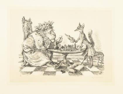 WEBER, Andreas Paul (1893 Arnstadt - 1980 Schretstaken). "Lion and Fox at Chess I".