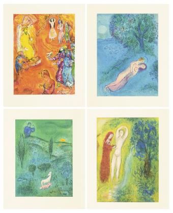 CHAGALL, Marc (after) (1887 Ljosna - 1985 Saint-Paul-de-Vence). 3 illustrations from "Daphnis and Chloe" and 1 illustration from "Arabian Nights".