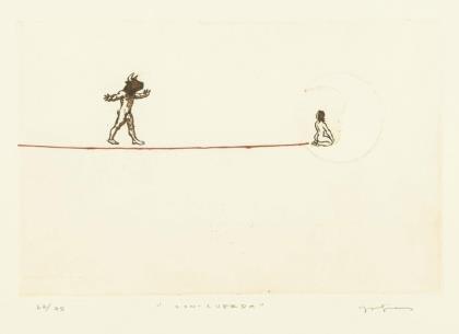 FLORA, Paul (1926 Glurns - 2009 Innsbruck). 2 works "Auf und davon II" and "Vier Komödianten".
