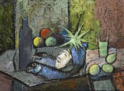 BARRAUD, Maurice (1889 Geneva - 1954 ibid.). Expressionist still life with fish and mask.