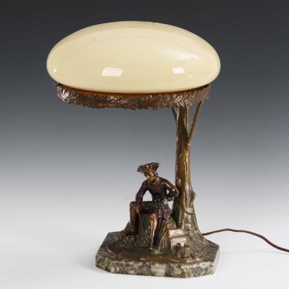 French art deco table lamp with glass shade. Shade probably Noverdy, foot probably FAG.