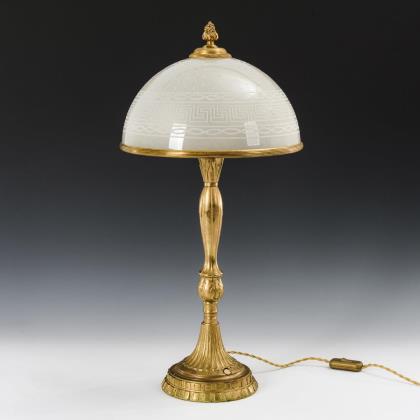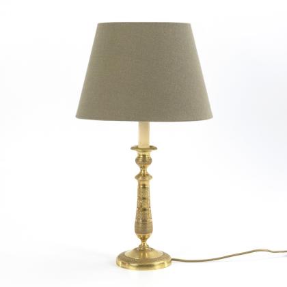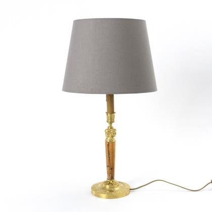 Tischlampe mit Kerzenleuchter-Fuß im Empire-Stil.