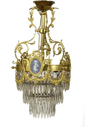 Schirm neu, Leuchter ca. 1840, nachträglich elektrifiziert