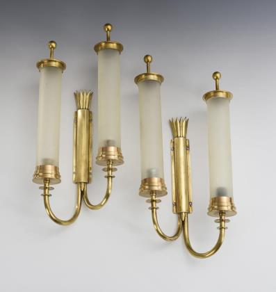 Arms attached to quiver-shaped wall mount in steps with screw sockets in the tall roller light fixtures
