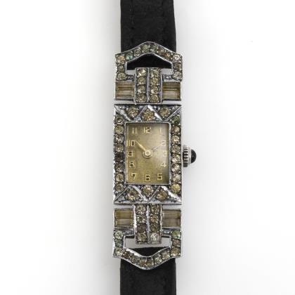 Art deco ladies wrist watch with old cut diamonds and emeralds.