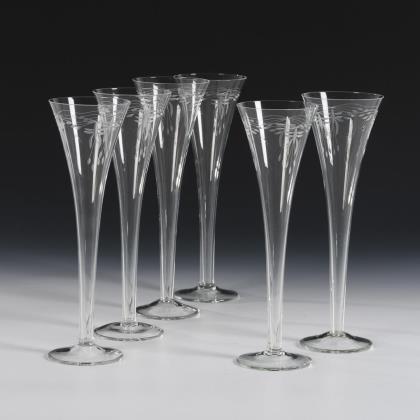 Squat goblet shape with 3 vines at the foot and martellated dome. Cantilevered glass insert with stylized rim ornament