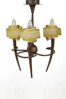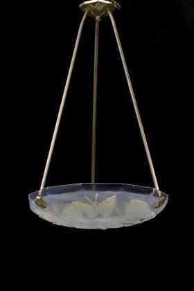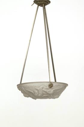 Art deco ceiling lamp with plastic sparrows. Muller Frères, Luneville.