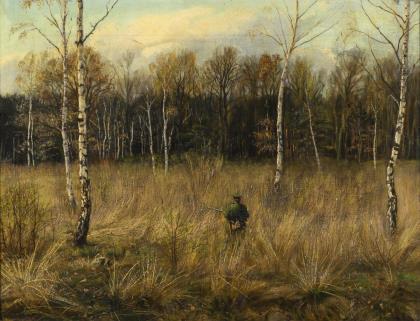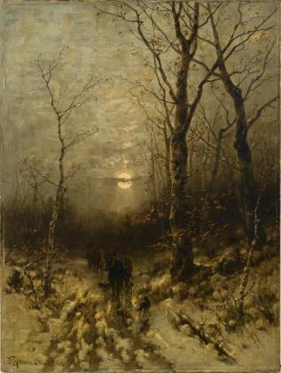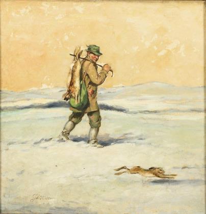 THOMASSIN, Désiré (1858 Vienna - 1933 Munich). Hunting party in winter.