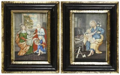 Two religious scenes with Anna, Mary and Joachim and with Joseph.