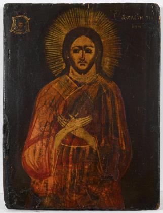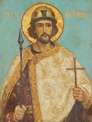 HISTORY PAINTER FIRST HALF 20TH CENTURY. Rare miniature icon: Saint Boris.