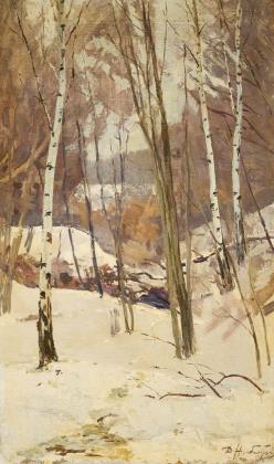 LANDSCAPE PAINTER 20TH CENTURY. Snowy landscape with birch trees.