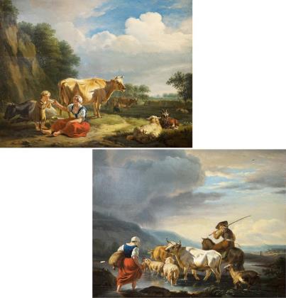 LANDSCAPE PAINTER 18TH CENTURY. Pendant pastoral scenes in romantic landscapes.
