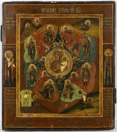 Icon with Mother of God of the Incombustible Thorn Bush.