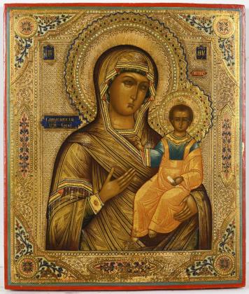 Icon with Holy Mother of God of Smolensk.