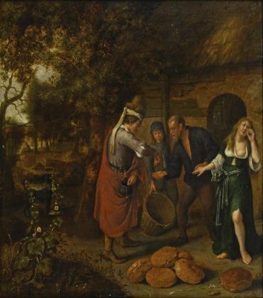 Multi-figure scene with peasant folk harvesting and processing grapes in mountainous landscape. Auctioned on July 10, 1976 at the auction house Günther Husmann in Düsseldorf. There and in Weltkunst old attribution to Giacomo Bassano. Illustrated in Weltkunst 1976, No. 12, June 15, 1976.