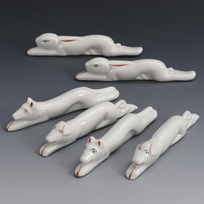 Knife banks in the form of lying animals (2 foxes, 2 rabbits and 2 dogs).