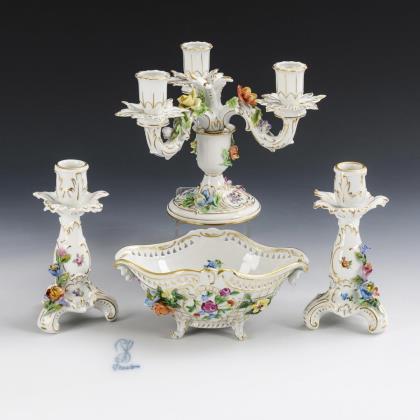 1 + 2 candlesticks and 1 bowl. Potschappel.