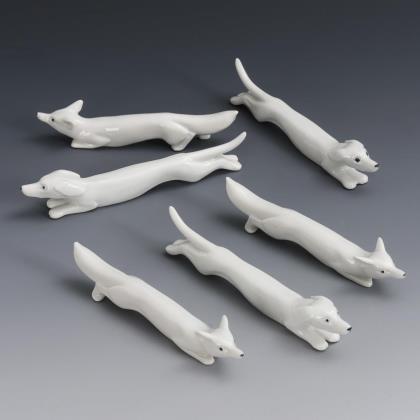 Knife banks in the form of animals (3 foxes and three dachshunds)