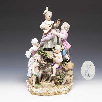 Rare large figural group: brothers and sisters. Meissen.