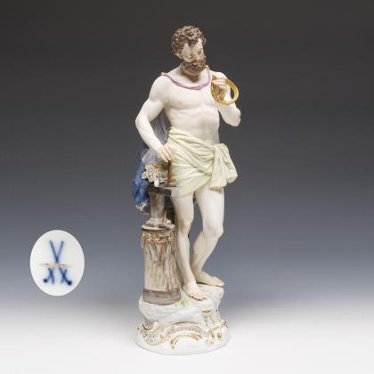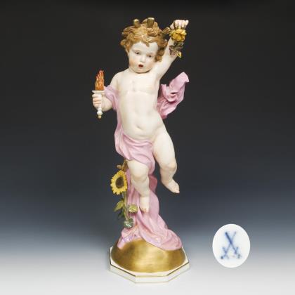 Modell von Johann Friedrich Eberlein 1745. Aus einer Serie von vier Jahreszeiten-Figuren, farbig bemalt, gold staffiert. Ritzmarke, Pressmarke, Schwertermarke