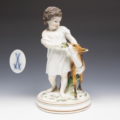 Rare large figurine: boy with deer. Meissen.