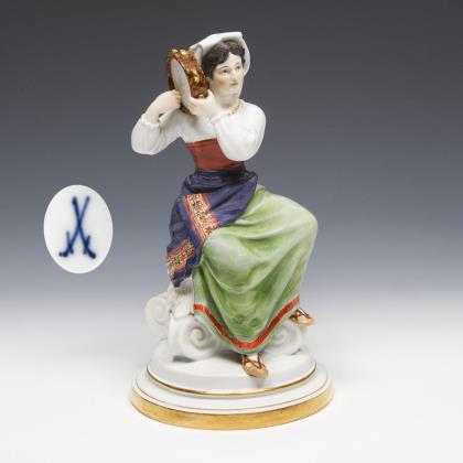 Italian woman with tambourine. Meissen.