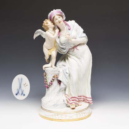 Modell von Johann Carl Schönheit 1788. Pendant zu Modell-Nr. I 66 "Liebe und Strafe". Farbig bemalt, gold staffiert. Ritzmarke, Malermarke, Schwertermarke