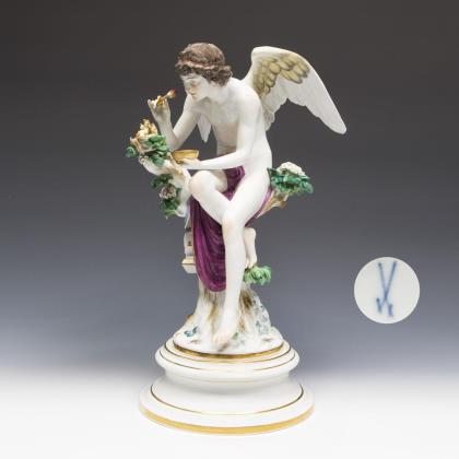 Large figure: Cupid feeding nightingales. Meissen.