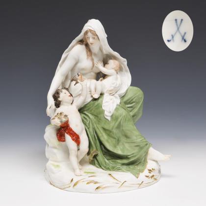Group of figures: The good mother. Meissen.