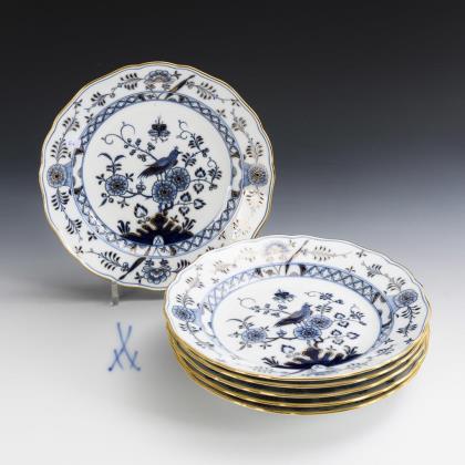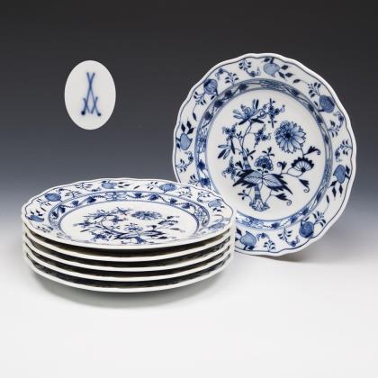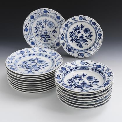 11 + 9 onion pattern plates. Meissen.