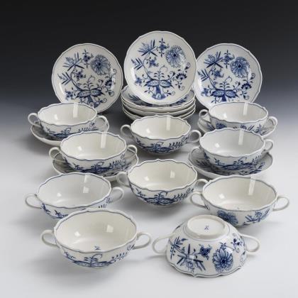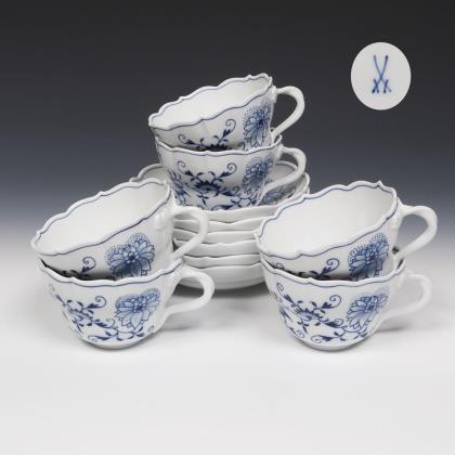10 onion pattern soup cups and 12 saucers. Meissen.