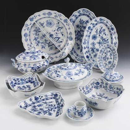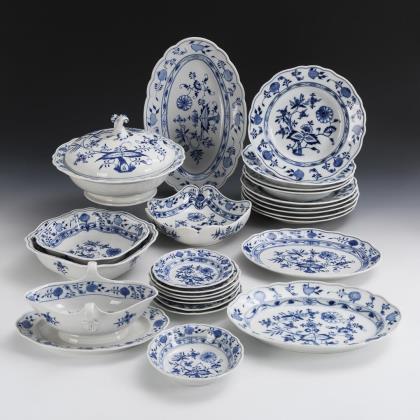 25 pieces of an onion pattern dinner service. Meissen.
