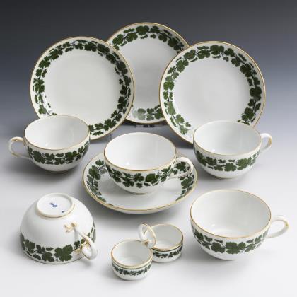 24 pieces of a coffee/tea set with vine leaves decor. Meissen.