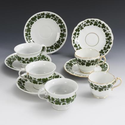 5 tea cups and saliere with vine leaves decor. Meissen.