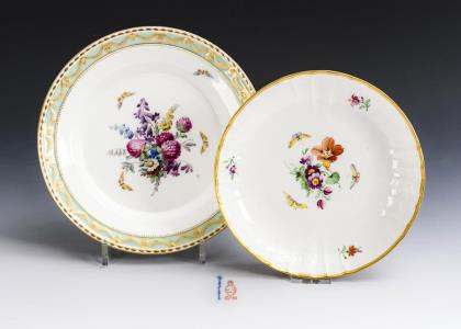 1x bowl model "Antikzierat". / 1x plate model "Kurländer pattern".