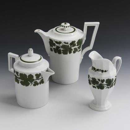 Coffee set for 4 persons with vine leaves decor. Meissen.