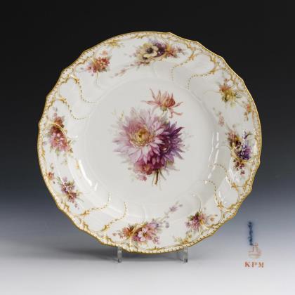 Bowl and plate painted with flowers and insects. KPM Berlin.