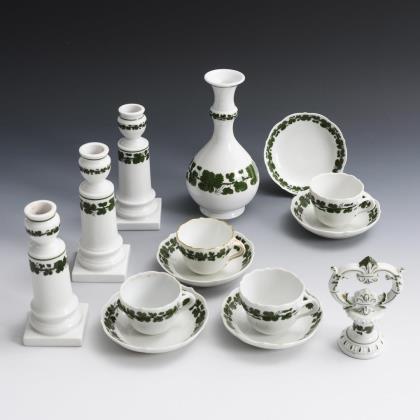 23 pieces of a coffee service with vine leaves decor. Meissen.