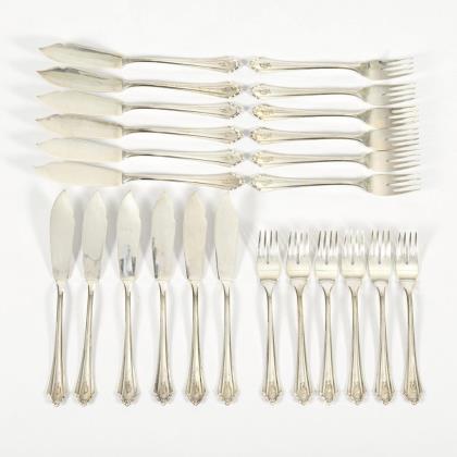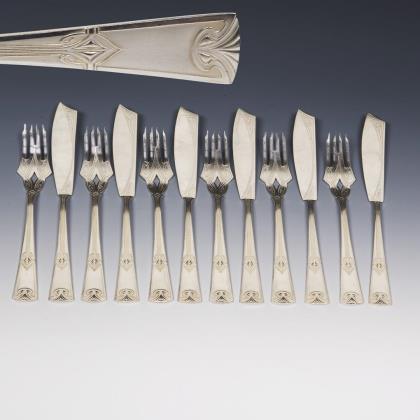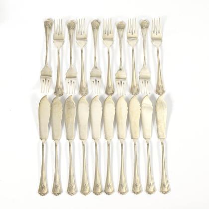 Silver fish cutlery for 10 persons. Vereinigte Silberwarenfabriken, Düsseldorf.